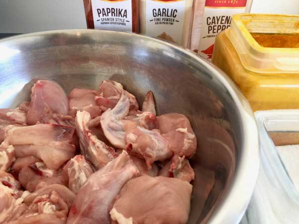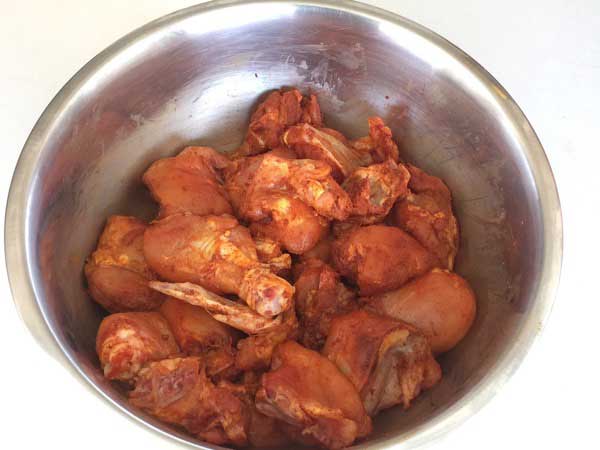 • Marinate Chicken with Paprika, Cayenne, Garlic Powder, Turmeric and Salt.